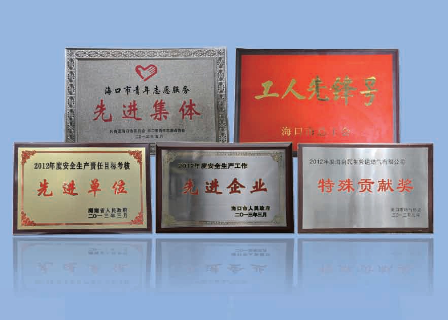 榮獲金融貸款誠信企業;海口市人民政府頒發的2012年度安全生產工作先進企業。