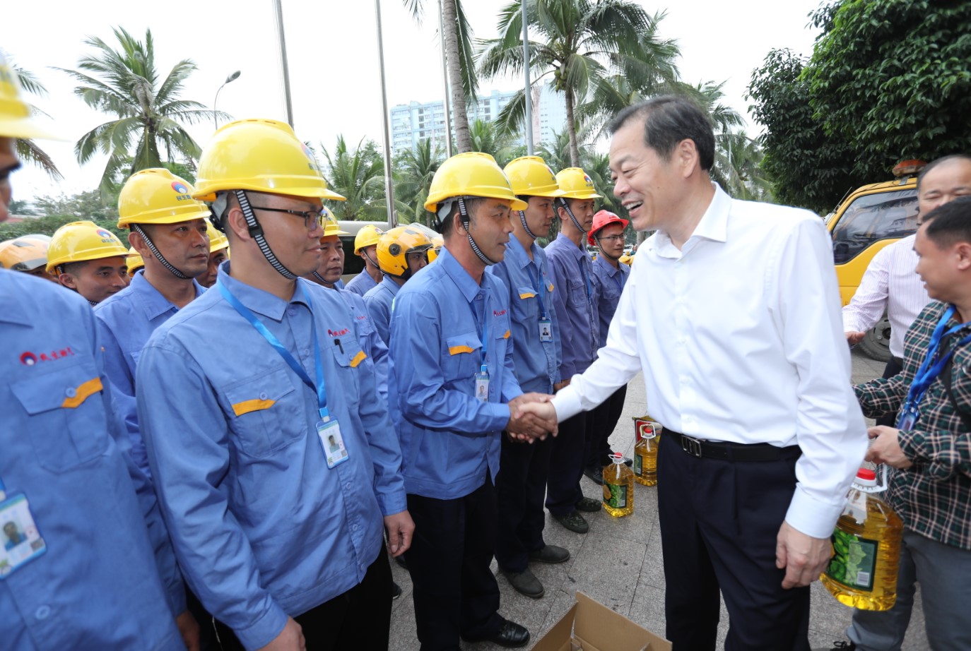 1月31日下午,海南省委常委、常務副省長毛超峰在海口市委副書記、市長丁暉的陪同下抵達民生大廈,檢查民生燃氣關于新型冠狀病毒的防控情況,同時檢查主要運營區域的燃氣供應及安全保障工作。陪同檢查的還有海南省發展和改革委員會黨組書記、主任符宣朝,海南省住房和城鄉建設廳黨組書記、廳長霍巨燃,海南省工業和信息化廳廳長、黨組書記王靜,海南省衛生健康委員會一級巡視員王峰等。