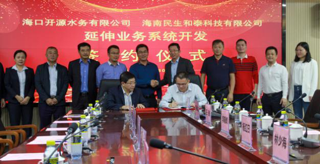 11月30日上午,海口開源水務有限公司與海南民生和泰科技有限公司線上延伸業務系統開發簽約儀式在海南民生燃氣多功能會議廳圓滿完成。海口市水務集團有限公司總經理孫傳志、總工程師張浩,海口開源水務有限公司總經理諶樂強、副總經理林志珍、副總經理陳傳平、黨總支副書記張運毅,海口威立雅水務有限公司總經理田剛,以及海南民生管道燃氣有限公司總裁李曉峰、副總裁王奮、副總裁楊紅日,海南益正聯合建工集團有限公司總經理林少海,海南民生和泰科技有限公司總經理陳遠達、副總經理鮑金霞等相關領導共同出席了此次簽約活動。